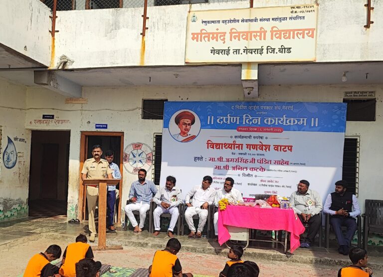 गेवराईत व्हॉईस ऑफ मीडियाच्या वतीने मुकबधीर विद्यार्थ्यांना शालेय साहित्य वाटप गेवराई : दि 6( वार्ताहार )मराठी पत्रकारितेचे जनक आचार्य बाळशास्त्री जांभेकर यांच्या स्मृतिदिनानिमित्त साजरा...