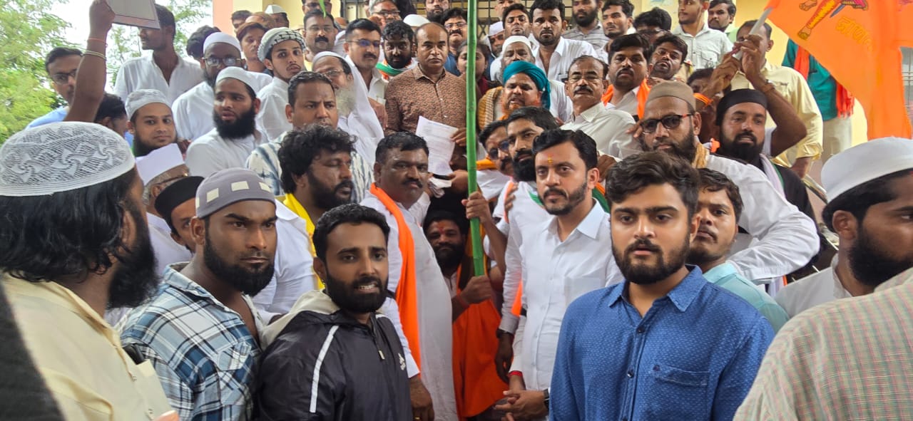 राज्यात सर्वत्र हिंदु मुस्लिम यांचे सलोख्याचे संबध असतांना अचानक काही लोकांनी राजकीय स्वार्थापोटी विशालगड अतिक्रमण प्रकरणांच्या नावाखाली गडा पासून ४ किमी लांब असलेल्या व अतिक्रमण प्रकरणाशी दुर पर्यंत संबध नसलेल्या मुस्लिम वस्ती असलेले गजापुर गावात जाऊन हिंदूवादी गुंडांनी हैदौस घालून घराचे तोडफोड करुन जिवन महिला सह लेकरांना जबर मारहाण करत गावातील जामा मस्जिद वर हल्ला करुन त्यांची विटंबना करुन समस्त मुस्लिम समाजच्या भावनावर हल्ला केला असल्याने या घटनेचा निषेध व्यक्त करण्यासाठी गेवराई शहरातील छ. शिवाजी चौक येथून मिरवणुक मार्गे तहसिल कार्यालयात हजारो मुस्लिम बांधवा सह दलित मराठा ओबीसी बांधवांनी सहभाग घेवून मुर्दाबाद मुर्दाबाद महाराष्ट्र सरकार मुर्दाबाद नही चलेंगी नही चलेंगी दादा गिरी नही चलेंगी, हल्लेखोर दहशतवादांना अटक करा अश्या घोषणांनी सर्व परिसर दणाणुन सोडत गजापुर येथील घटनेचा तिर्व निषेध व्यक्त केला असून विविध समाजातील समाजबांध यामध्ये सहभागी झाले होते